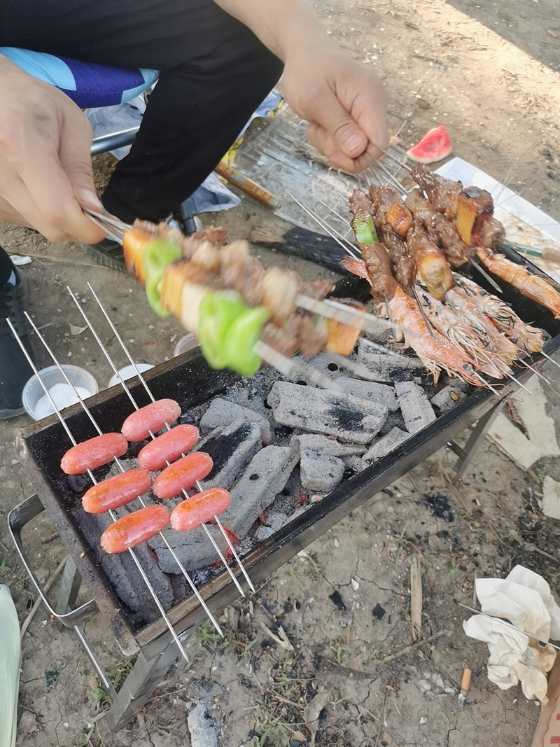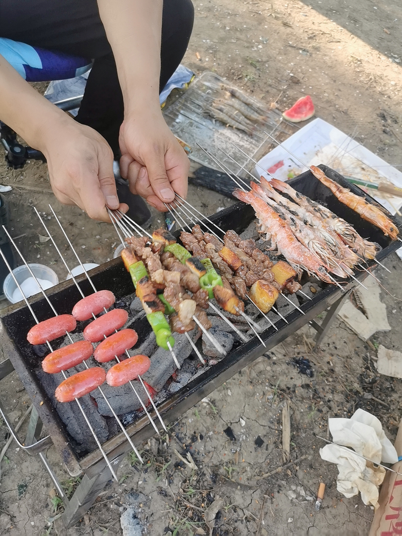 終于到了大家期待的燒烤環(huán)節(jié),香腸,肉,青菜,蝦也紛紛擔(dān)當(dāng)起了主角,為這場(chǎng)味蕾上的狂歡貢獻(xiàn)著“演技”。