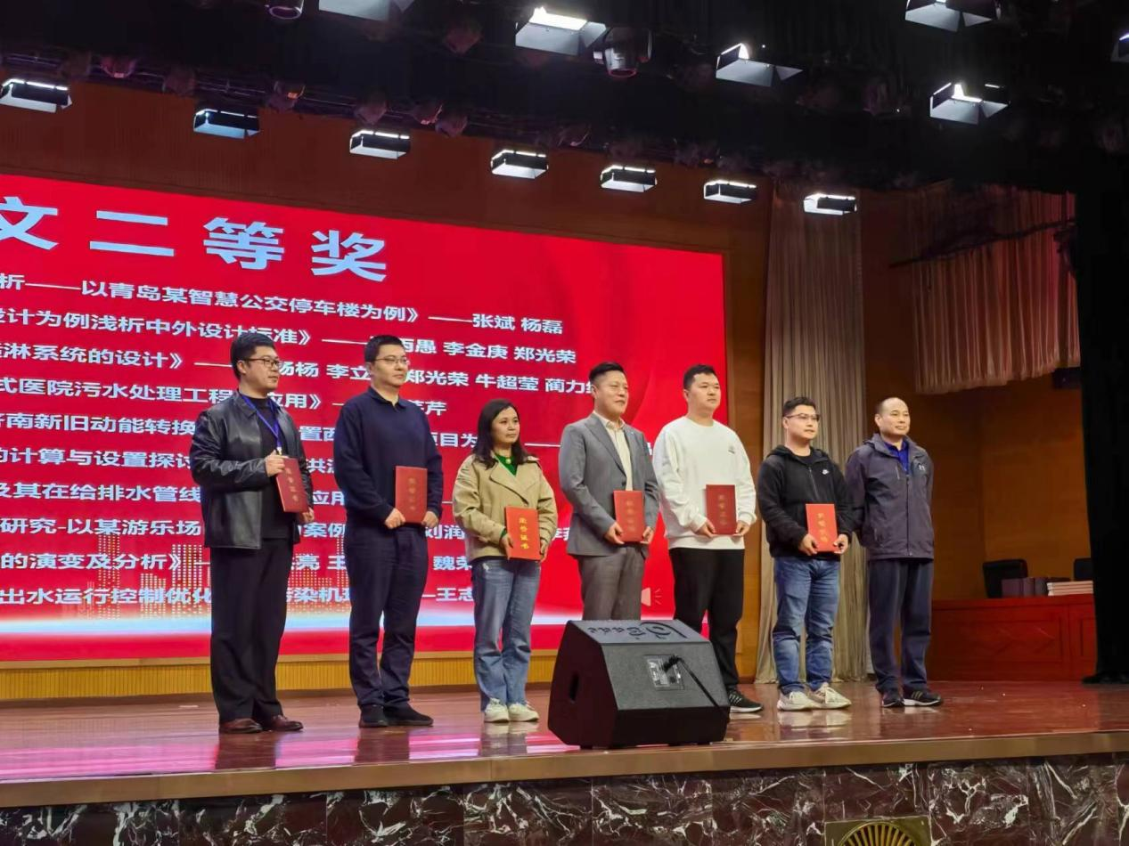各位專業(yè)人員齊聚年會(huì),圍繞給排水行業(yè)發(fā)展,分享各自實(shí)踐經(jīng)驗(yàn),探尋行業(yè)高質(zhì)量發(fā)展的方法與途徑。我公司給排水設(shè)計(jì)人員榮獲多個(gè)獎(jiǎng)項(xiàng)。孟維娟榮獲“山東省十佳青年給排水工程師”稱號(hào)。楊陽(yáng)被聘為山東土木建筑學(xué)會(huì)建筑給排水專業(yè)委員會(huì)副主任委員、山東省給水排水技術(shù)情報(bào)網(wǎng)副理事長(zhǎng)、山東省國(guó)匯建筑與人文發(fā)展研究院建筑專業(yè)委員會(huì)專家、大匯建筑業(yè)平臺(tái)“專家智庫(kù)”行業(yè)專家。劉潤(rùn)君、楊陽(yáng)、李燕君撰寫論文《市政設(shè)施不完善場(chǎng)地的給排水處理研究-以某游樂(lè)場(chǎng)區(qū)地塊為案例》被評(píng)為 2024年山東省給水排水學(xué)術(shù)年會(huì)論文二等獎(jiǎng)。張帥、楊陽(yáng)、張晨晨撰寫的論文《高品質(zhì)住宅小區(qū)集中供應(yīng)熱水系統(tǒng)的設(shè)計(jì)案例》被評(píng)為 2024 年山東省給水排水學(xué)術(shù)年會(huì)論文三等獎(jiǎng)。楊陽(yáng)、崔節(jié)超、王志遠(yuǎn)撰寫的論文《住宅太陽(yáng)能光熱及光伏熱水系統(tǒng)的能效對(duì)比分析》被評(píng)為2024年山東省給水排水學(xué)術(shù)年會(huì)論文優(yōu)秀獎(jiǎng)。楊陽(yáng)撰寫的《青年設(shè)計(jì)師的社會(huì)責(zé)任與擔(dān)當(dāng)》被《建筑與人文》評(píng)為建筑人文類二等獎(jiǎng)。
